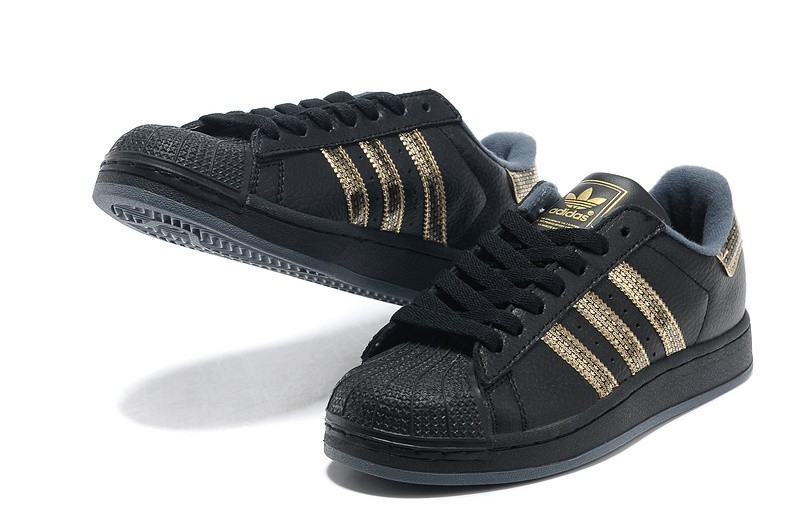 Venta Mujer Negras Doradas Adidas Originals Superstar 2 "Bling Pack" Casual Zapatillas España Baratas